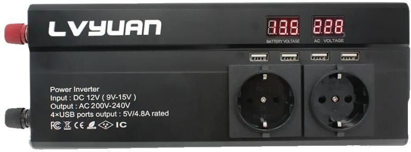 Autóinverter, 2600W csúcsteljesítmény, 1300W folyamatos teljesítmény, 12 V EU fekete