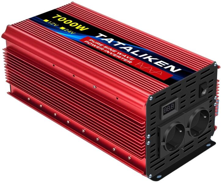 Tataliken 7000W Tiszta Szinuszhullámú Inverter - 12V-ról 220V-ra ⚡️ Ez a nagy teljesítményű inverter ideális választás autójába vagy otthonába, hogy 12V-os egyenáramot alakítson át 220V-os váltóárammá. Tökéletes érzékeny elektronikai eszközök és háztartási gépek biztonságos működtetéséhez. Főbb Jellemzők:Nagy teljesítmény: 7000W teljesítményű, amely elegendő a legtöbb eszköz számára. Tiszta szinuszhullám: Biztosítja a stabil és tiszta áramot, ami elengedhetetlen az érzékeny elektronikai eszközök számára. A 90%-os konverziós hatékonyság energiatakarékos működést garantál. Széles bemeneti feszültségtartomány: 12V DC bemenet, 220V AC ± 10% kimenet. CE tanúsítvány: Megfelel a szigorú biztonsági és minőségi előírásoknak. Műszaki adatok:Jellemző ÉrtékInverter típusa Tiszta szinuszhullámBemeneti feszültség 12V DCKimeneti feszültség 220V AC ± 10%Teljesítmény 7000WKonverziós hatékonyság 90%Kimeneti frekvencia 50HzAljzat típusa EurópaTanúsítvány CEEz az inverter megbízható és hatékony megoldást nyújt a különböző elektromos eszközök tápellátására útközben vagy otthon. A tiszta szinuszhullámú technológiának köszönhetően biztonságosan használható érzékeny elektronikai eszközökhöz is.