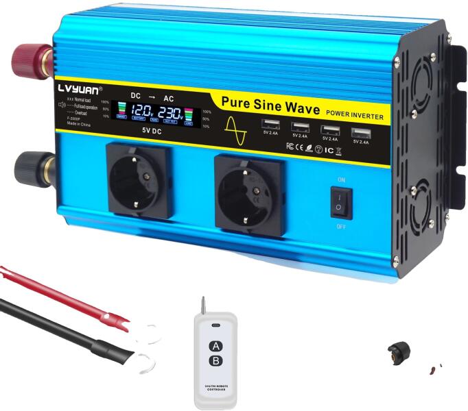 Lvyuan Power Inverter, 5000W csúcsteljesítmény, tiszta szinuszhullám kimenet, 4000W 24V220V EU