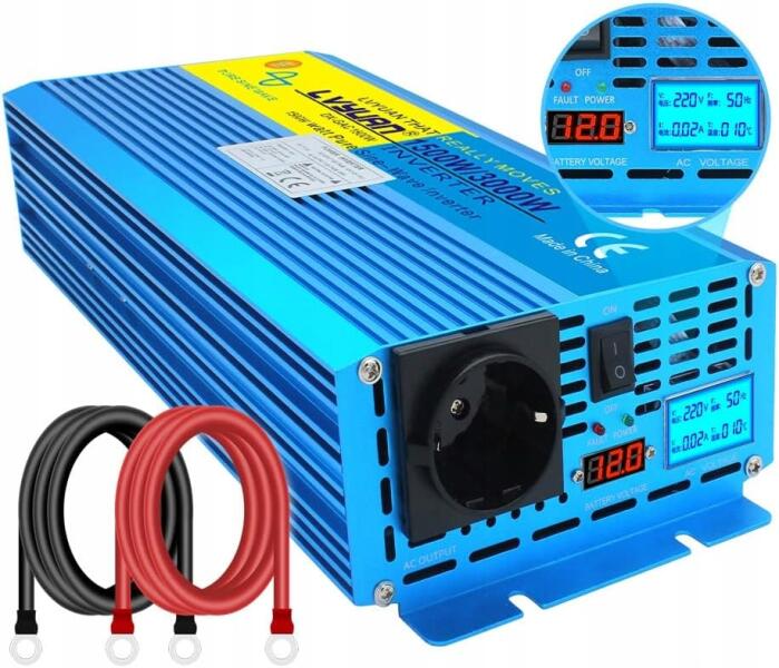 Lvyuan Feszültség átalakító 1500/3000W 12V 230V 1 Led LCD aljzattalALLEGRO