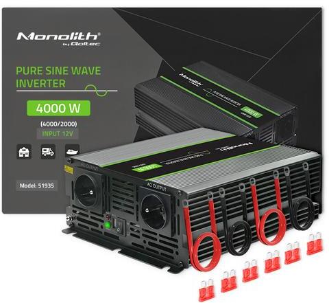 Qoltec Tiszta szinuszos inverter Monolith | 2000W | 4000W | 12V-ról 230V-ra (QC-51935)