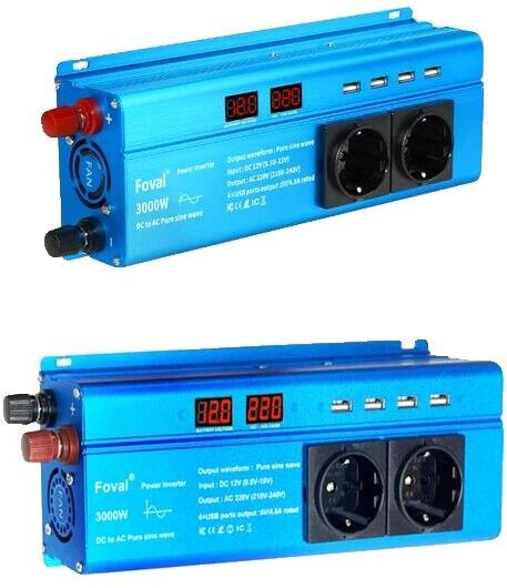 Szinuszos inverter, 12 V DC 220 V AC átalakítás, EU aljzat kompatibilitás, 3000 W EU 50 Hz