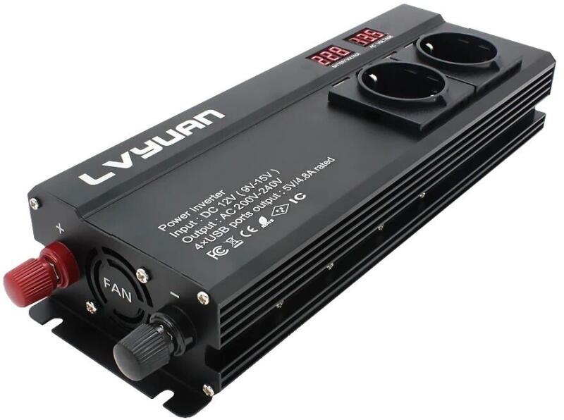 Hatékony 6000W Teljesítmény Inverter 4 USB Porttal - Sokoldalú Energiaátalakítás ⚡ Ez a teljesítmény inverter ideális megoldás az egyenáramú energia átalakítására váltóáramúvá, biztosítva a megbízható energiaellátást útközben és otthon egyaránt. Főbb Jellemzők:Hatékony Energiaátalakítás: A módosított szinuszhullámú inverter 90% feletti hatékonysággal alakítja át az egyenáramot váltóárammá. Nagy Teljesítmény:6000W csúcsteljesítmény1300W folyamatos teljesítmény a legtöbb eszköz biztonságos és hatékony működtetéséhez. Beépített Védelem: Több biztonsági funkcióval rendelkezik, beleértve: Alacsony feszültségű riasztás Túlterhelés elleni védelem Túlmelegedés elleni védelemKönnyű Figyelemmel Kísérés: A beépített LED kijelző valós idejű információt nyújt a feszültségszintekről és az inverter állapotáról. Sokoldalú USB Töltés: 4 USB port (összesen 4.8A) lehetővé teszi több eszköz egyidejű töltését. Műszaki Adatok:Jellemző ÉrtékKimeneti hullámforma Módosított szinuszhullámCsúcsteljesítmény 6000WFolyamatos teljesítmény 1300WFrekvencia 50 Hz ± 2 HzBemeneti DC feszültség 12VKimeneti AC feszültség 220VUSB kimenet 4.8ASúly 1.4 kgTovábbi Információk:Szín: Fekete Anyag: Alumínium ötvözet Aljzat: EU szabvány Hűtés: Beépített ventilátor Ez a fekete színű, 6000W-os inverter ideális választás azok számára, akik megbízható és sokoldalú energiaforrásra vágynak.