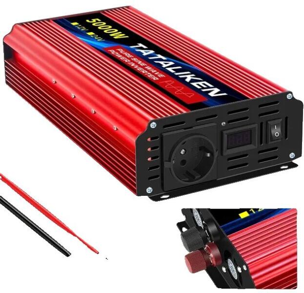 Tataliken 5000W Tiszta Szinusz Inverter - Megbízható áramforrás bárhol! ⚡️ Ez a nagy teljesítményű inverter ideális választás, ha megbízható 230V/240V-os áramforrásra van szükséged távol a hálózattól. Legyen szó kempingezésről, hajózásról, vagy otthoni tartalék áramforrásról, a Tataliken inverter gondoskodik róla, hogy eszközeid mindig működőképesek legyenek. Főbb jellemzők: ? Nagy teljesítmény: 5000W csúcsteljesítmény (4000W folyamatos teljesítmény) ? Tiszta szinuszhullám: Biztosítja az érzékeny elektronikai eszközök biztonságos működését. ? 12V DC bemenet, 230V/240V AC kimenet: Könnyen csatlakoztatható akkumulátorhoz. ?️ LCD kijelző: Valós idejű információk a bemeneti feszültségről, kimeneti teljesítményről és az akkumulátor töltöttségéről. ? EU szabványos csatlakozó: Kompatibilis a legtöbb európai eszközzel. Műszaki adatok:Jellemző ÉrtékKimeneti teljesítmény 4000W (folyamatos)Csúcsteljesítmény 5000WBemeneti feszültség 12V DCKimeneti feszültség 230V/240V ACFrekvencia 50HzInverter típusa Tiszta szinuszVálassz a teljesítmény opciók közül: 1600W, 2200W, 3000W, 5000W, 6000W, 7000W, 8000W – Találd meg a számodra ideálisat!