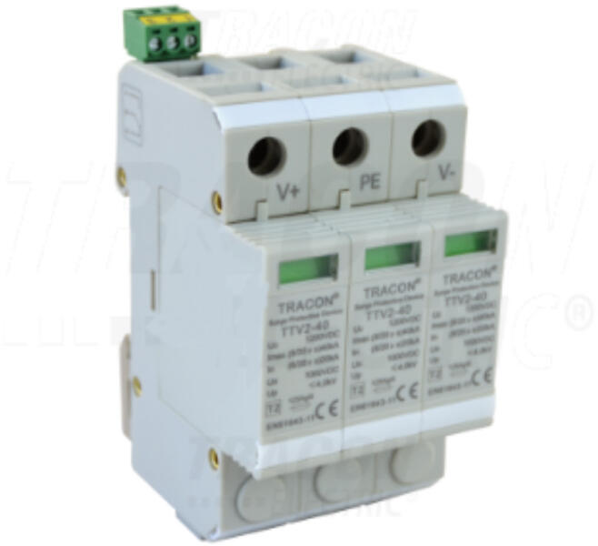 Tracon Dc Túlfeszültség Levezető Pv Rendszerhez; 2-es Típus; 3modul, 1000 Vdc, 20/40 Ka (8/20 Us), 2p (tr-ttv2-40-dc-1000)